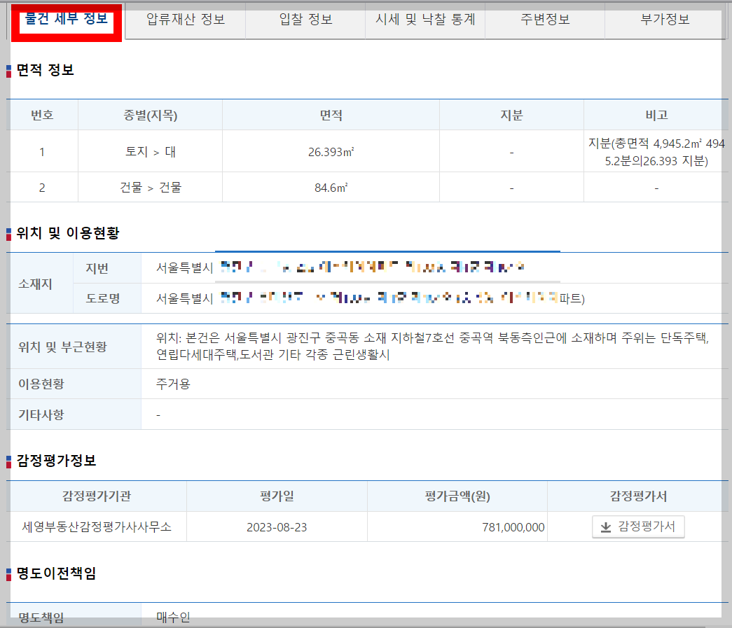 그 중에 세부정보와 재산 정보, 입찰 정보를 클릭해보겠습니다.