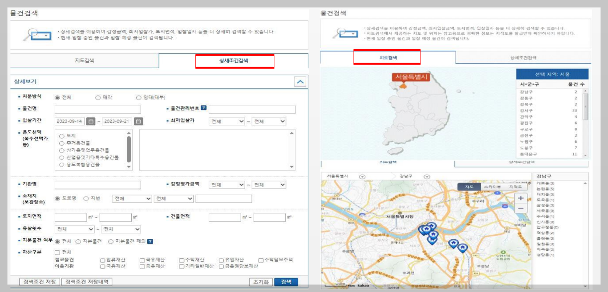 상세조건검색 또는 지도검색을 이용하기