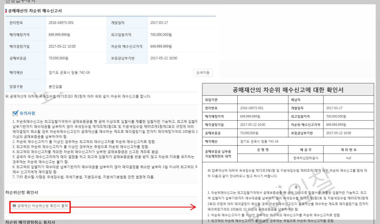 차순위 매수 신고가능일 때, 상세 이동을 해보세요.