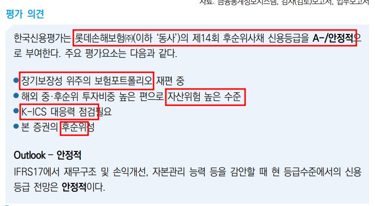 3. 롯데손해보험14 신용평가서 뜯어보기