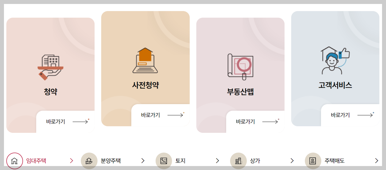 그 아래로 내려보시면 임대주택을 클릭합니다.