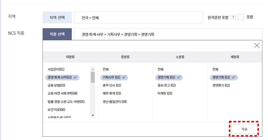 저는 경영회계사무> 기획사무 > 경영기획 > 경영기획 을 클릭해보았습니다.