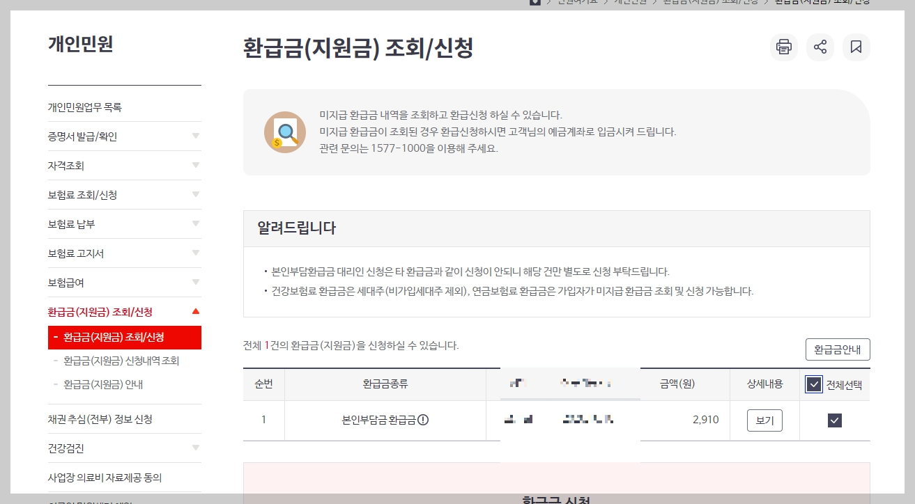 4. 국민건강보험 환급금 조회 및 신청방법