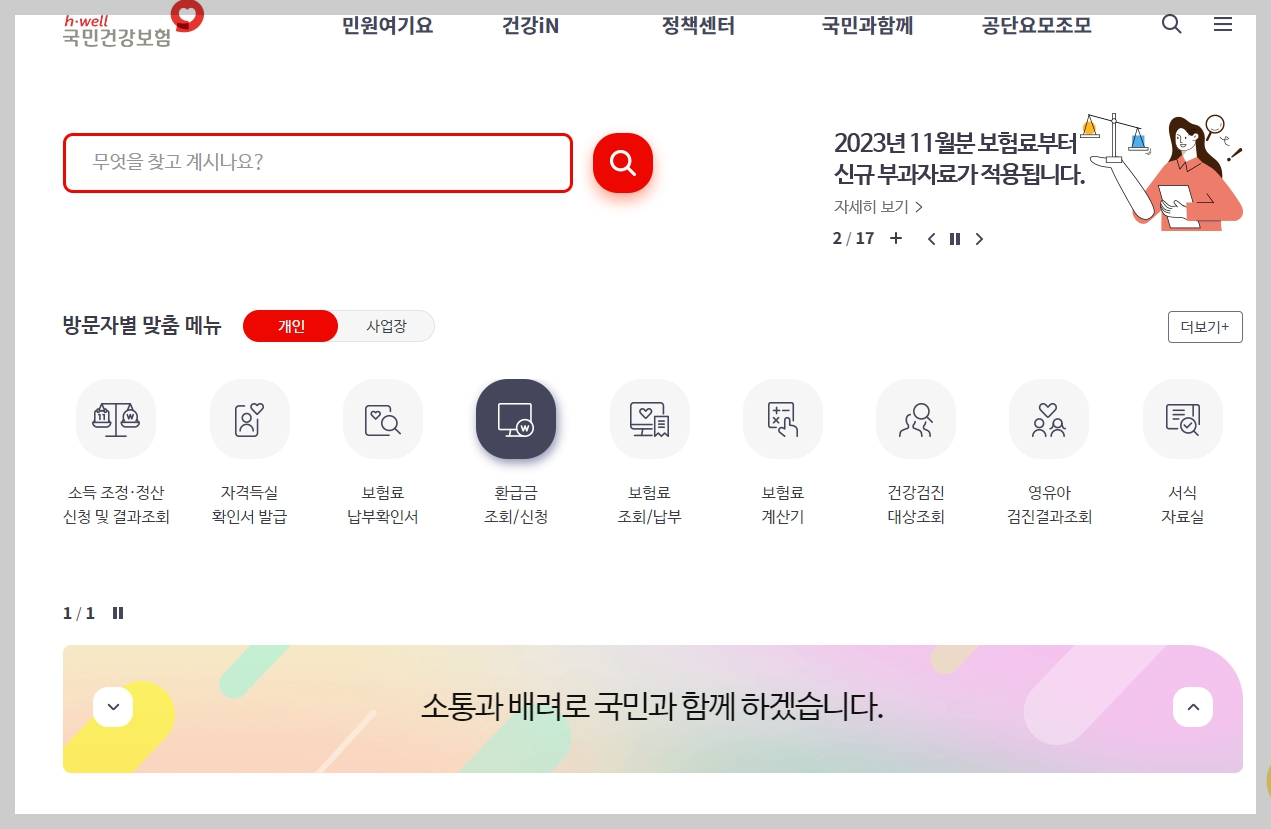 국민건강보험 홈페이지에 들어왔습니다.