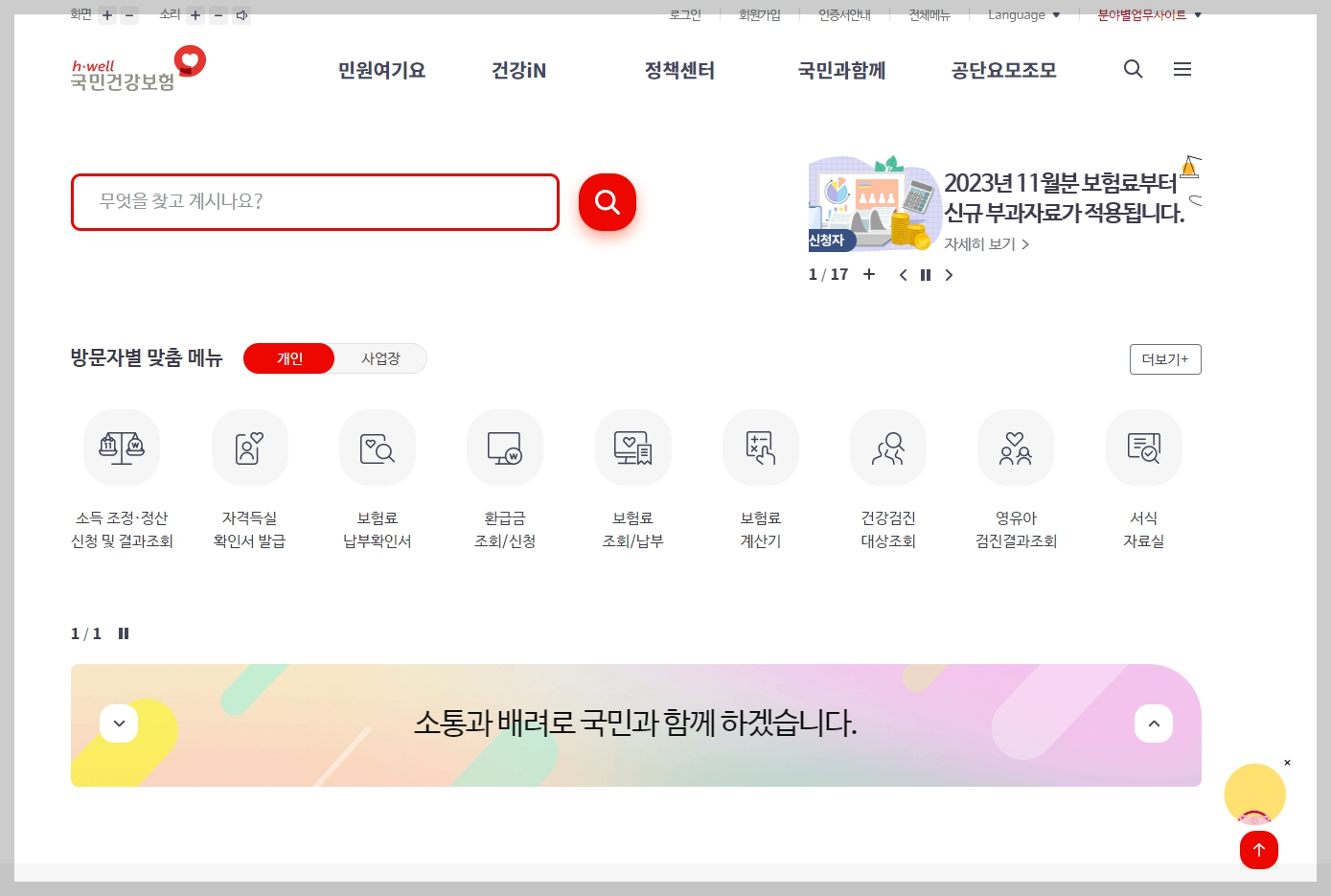 국민건강보험 홈페이지에 들어왔습니다.