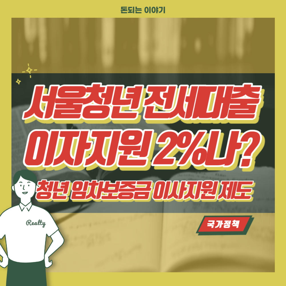 서울에 주거하시는 청년들! 주목하세요. 여기서 말하는 청년은 만 19세에서 39세입니다. 청년분들을 위해서 꿀정보를 가져왔습니다. 혹시 서울시에서 전세자금대출의 이자를 지원해줄 수 있다는 거 아셨나요? 오늘은 서울시 청년 임차보증금 이자지원 제도에 대해서 설명드리도록 하겠습니다. 하단에 방법과 대상자와 문의번호까지 한번에 알려드릴테니 아래까지 꼭 읽어주세요. 그럼 시작하겠습니다.