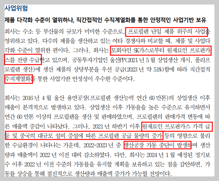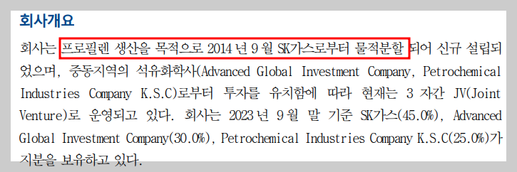 이 회사는 프로필렌을 만드는 화학회사입니다.