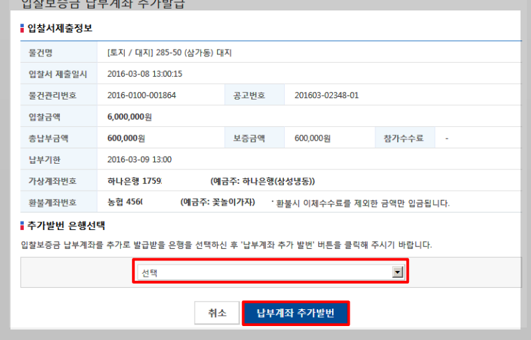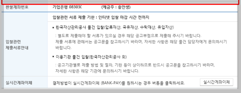 그럼 마지막으로 입찰보증금 가상계좌를 확인해볼까요. 거의 다 왔습니다.