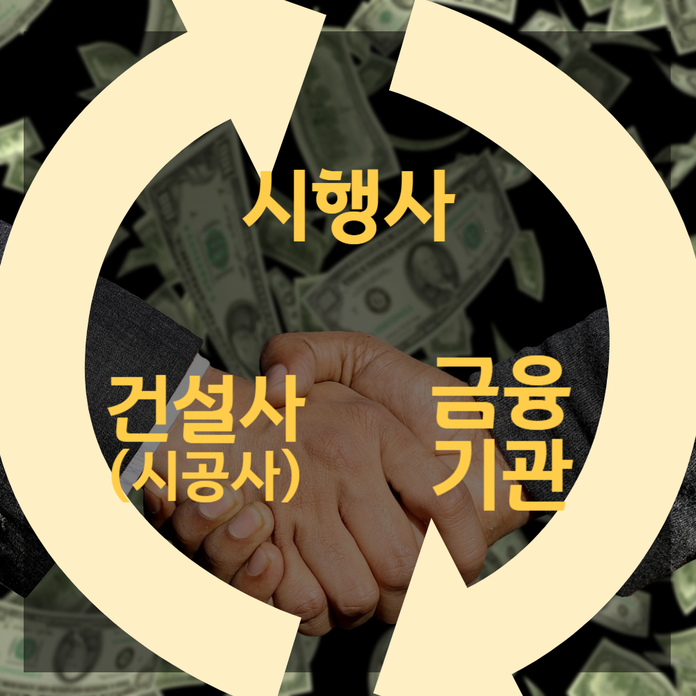 2008년 금융위기 당시 부동산PF 문제로 무려 약 40곳의 건설사가 줄줄이 도산했습니다. 시행사, 건설사, 금융기관은 정말 긴밀히 연결되어있어요. 부동산 개발을 하려고 시행사가 건설사를 보증인으로 세워 대출을 받고, 사업이 진척되지 않으면 시행사는 물론 건설사까지 줄줄이 영향을 받습니다.