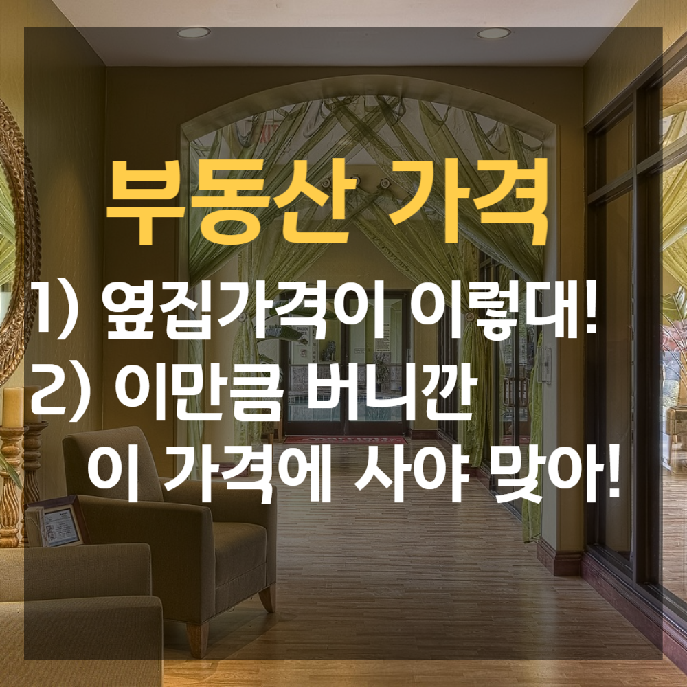 : 아파트 가격을 호갱xx, 실거래사이트 등으로 확인하면 가격을 유추할 수 있습니다. 비슷한 부동산이 얼마에 팔렸냐가 기준이 되는 것이죠.