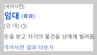 임대는 돈을 받고 내 물건을 빌려 주는 것입니다. 빌려주는 사람은 임대인!