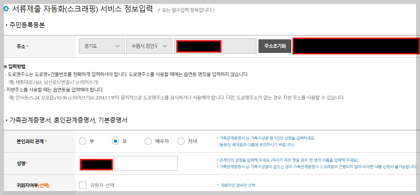 4. 대상 주택 정보를 입력합니다.