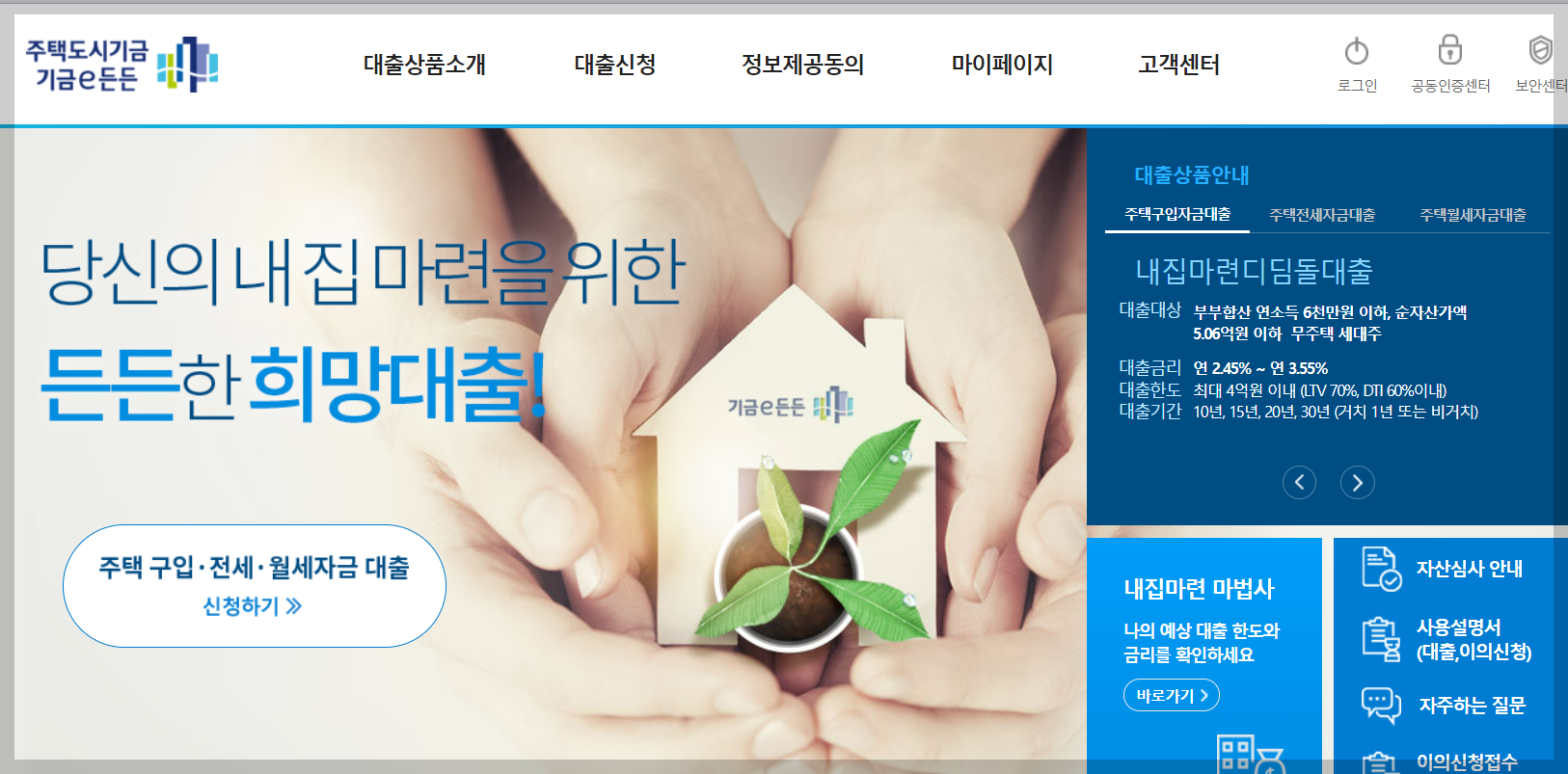 1) 내집마련디딤돌대출 :무주택 서민에게 저금리로 구입 자금을 빌려주자! 생애 최초 아니어도 된다.