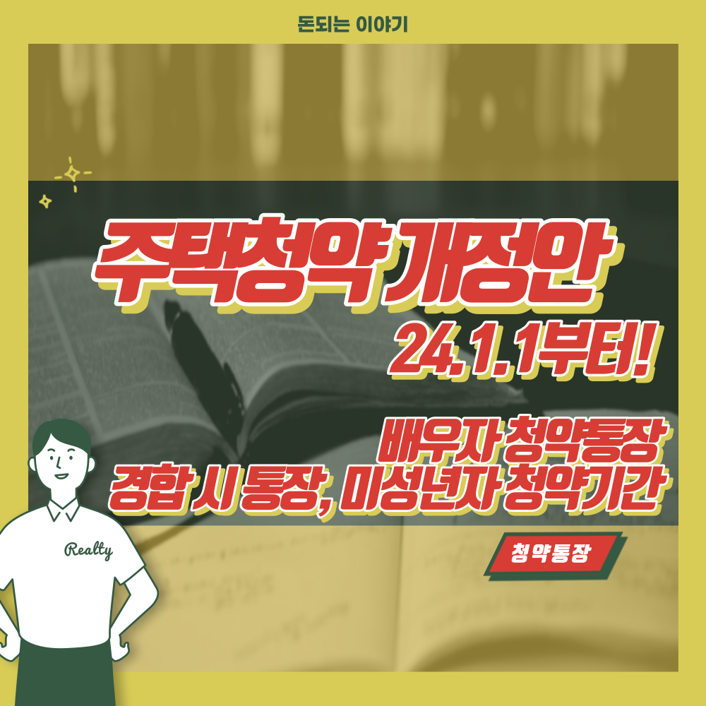 안녕하세요 워런해핏입니다. 내 명의로 된 집 한 채는 있어야 하죠. 주택을 사는 방법은 여러 가지가 있습니다. 일반 매매, 경매와 공매도 있겠지만 가장 사람들이 원하는 것은 바로 주택청약으로 주택을 구매하는 방법 아닐까요? 2024년 1월 1일부터 시행되는 주택청약에 대한 개정안이 발표되었는데요. 변경된 부분을 알아보겠습니다.