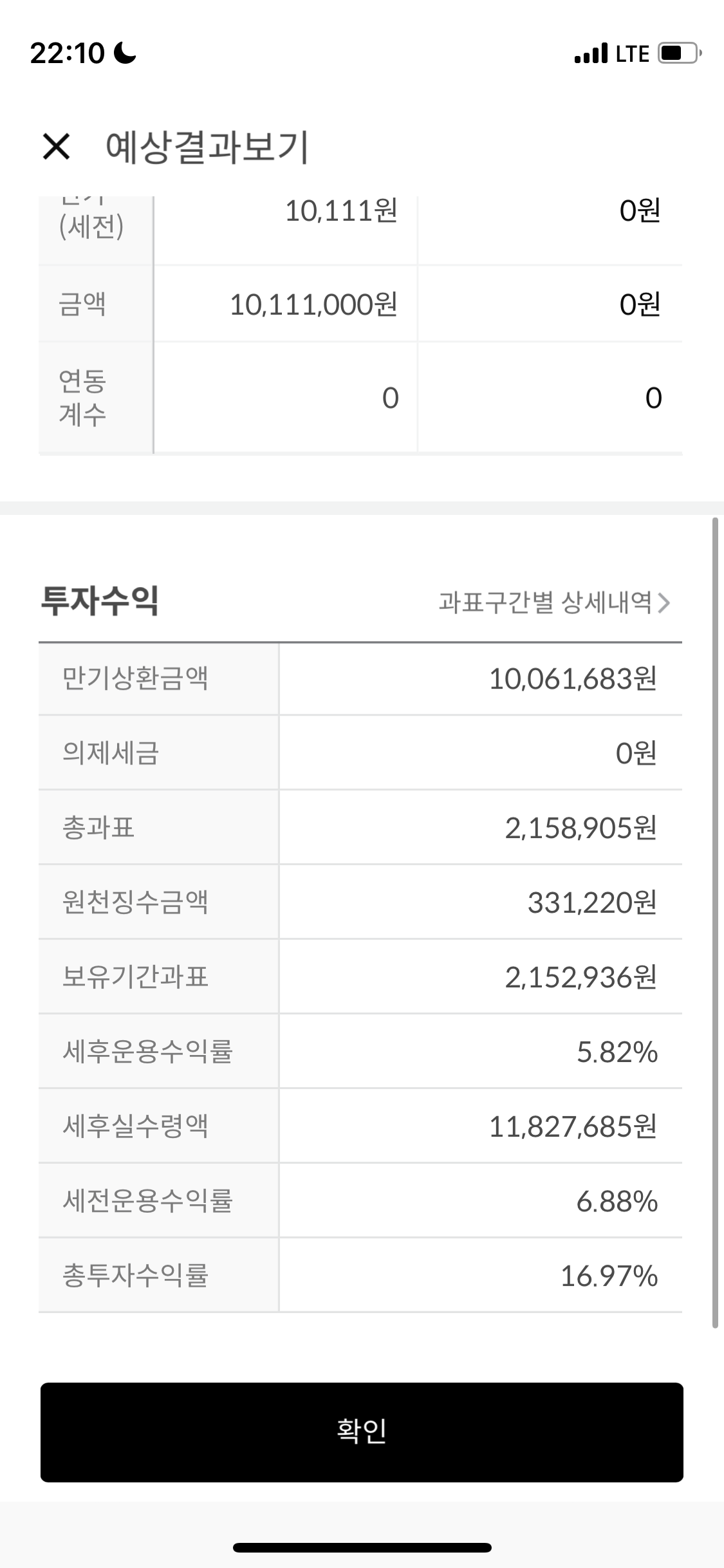 세전, 세후 수익률이 나옵니다.