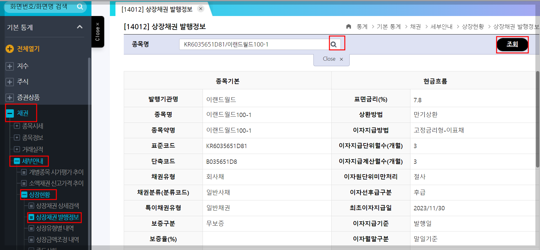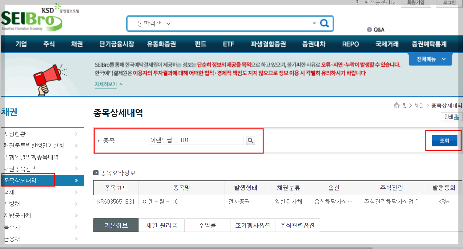 그럼 채권 정보를 확인해봅시다.