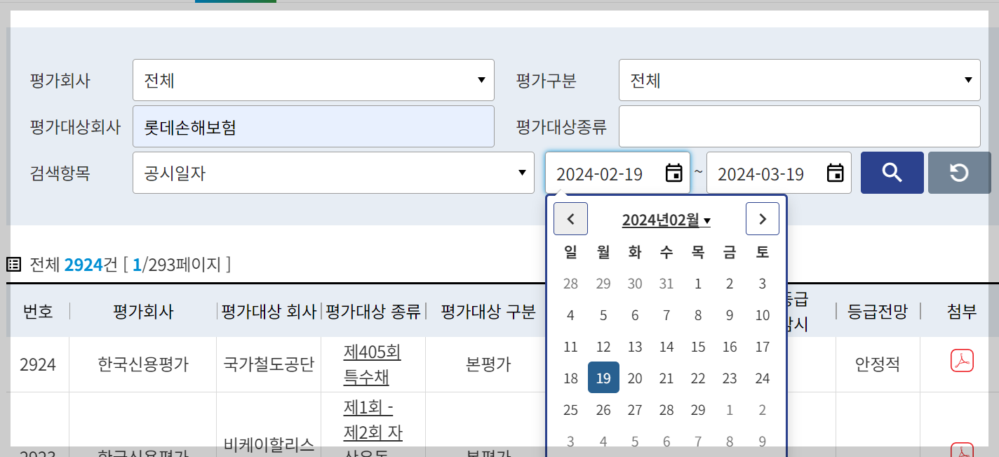 채권종류, 평가대상, 공시일자, 평가등급,