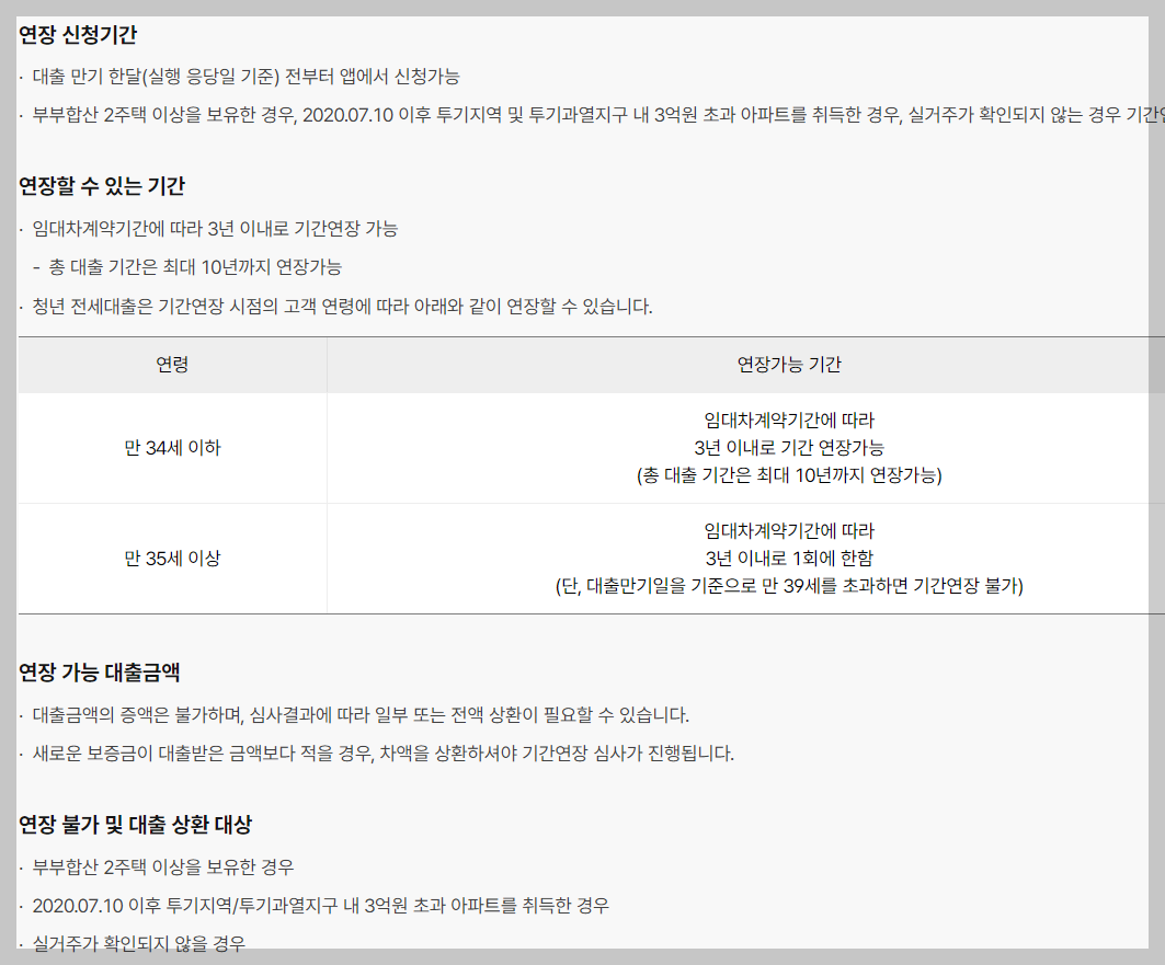 만기 한 달 전부터 신청가능하고, 3년 이내로 연장 가능합니다. 최장 10년까지도 가능합니다.