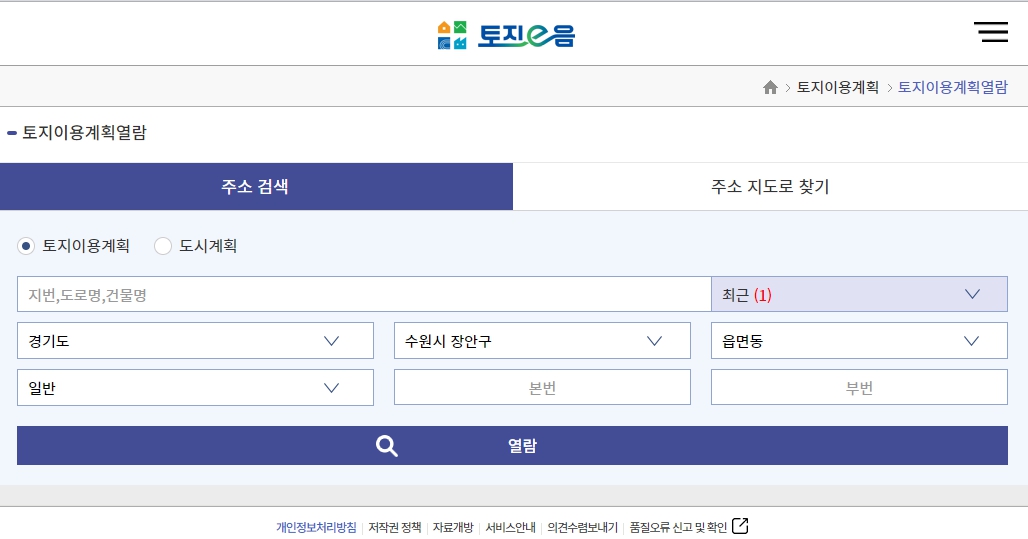 인터넷을 통해서 무료로 열람할 수 있습니다. 토지이음이라는 사이트입니다.