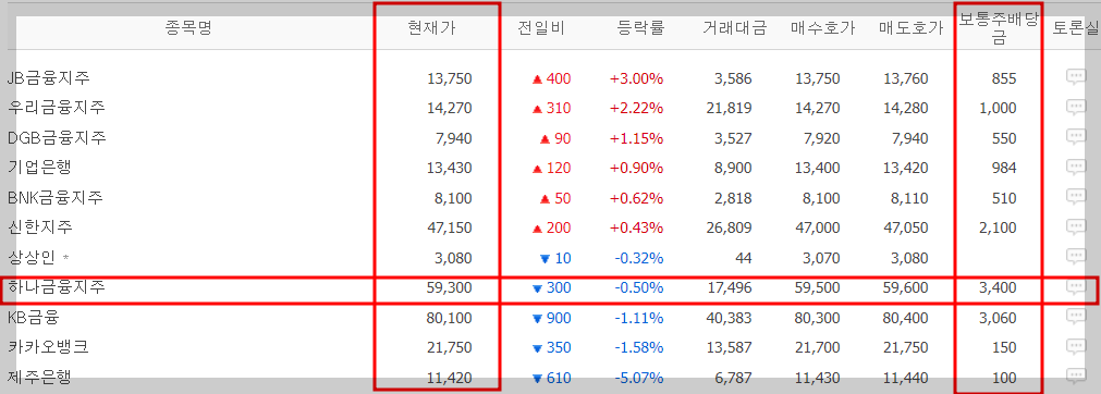 2. 하나금융지주 배당금, 배당락, 배당일