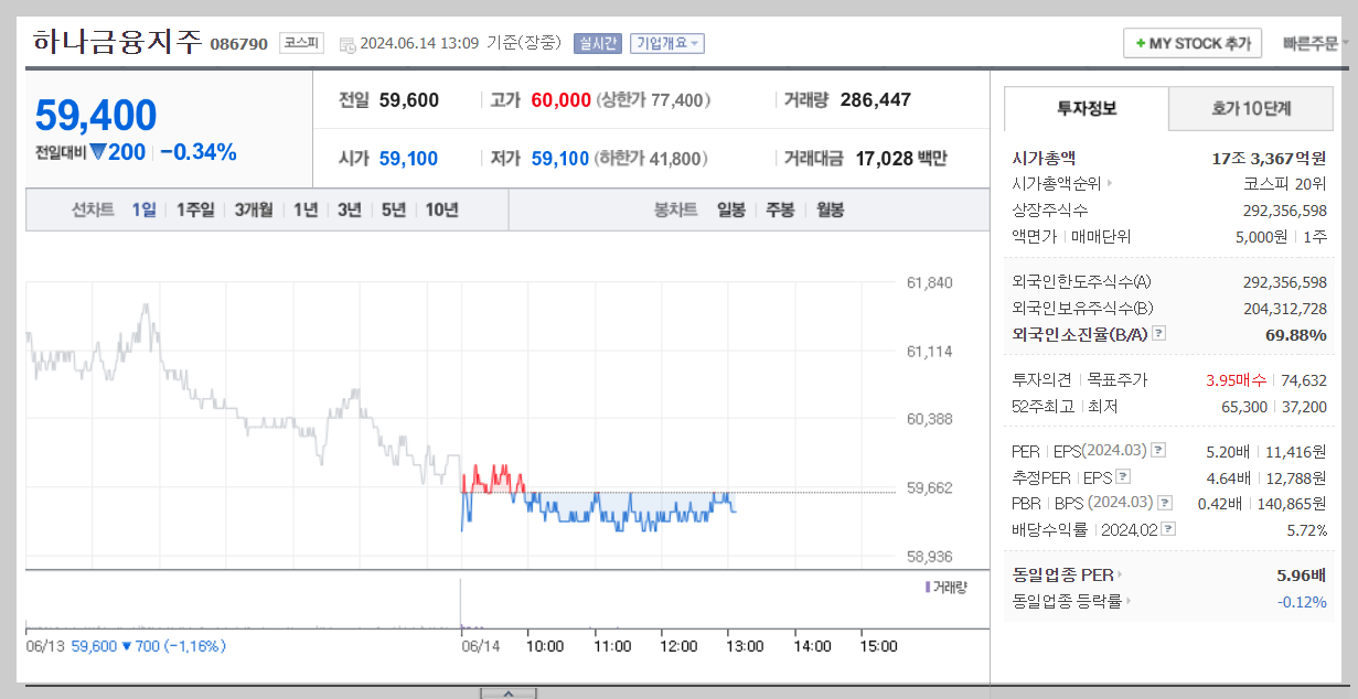 1. 하나금융지주 분석