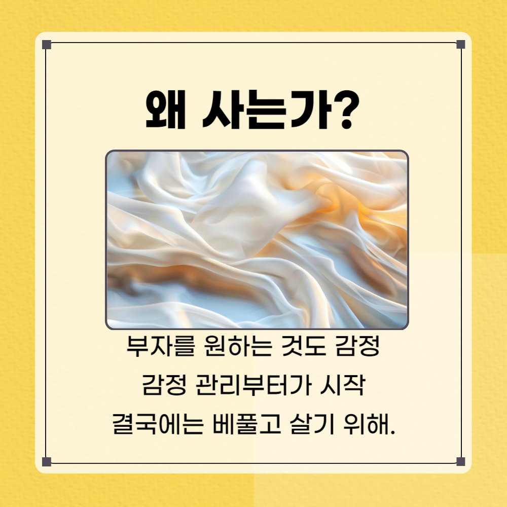 우리는 돈을 원한다고 생각할겁니다. 하지만 우리가 원하는 건 '감정'입니다. 자유, 안전, 평온, 즐거움 등이죠. 아무리 돈이 많아도 행복해지는 법을 알지 못하면 불행할 뿐입니다.
