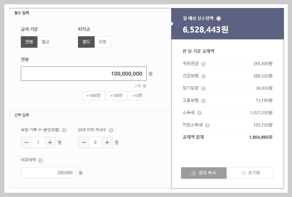 1. 연봉 1억원 실수령액 모의계산