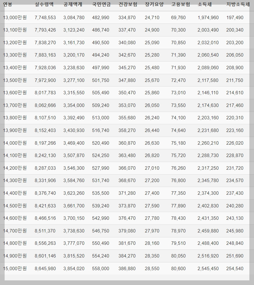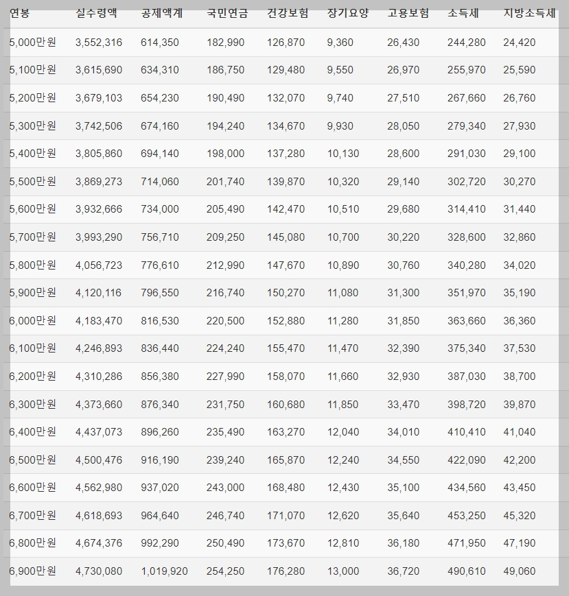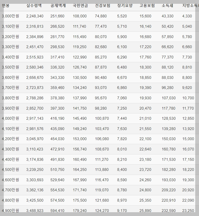 2.연봉 실수령액 표