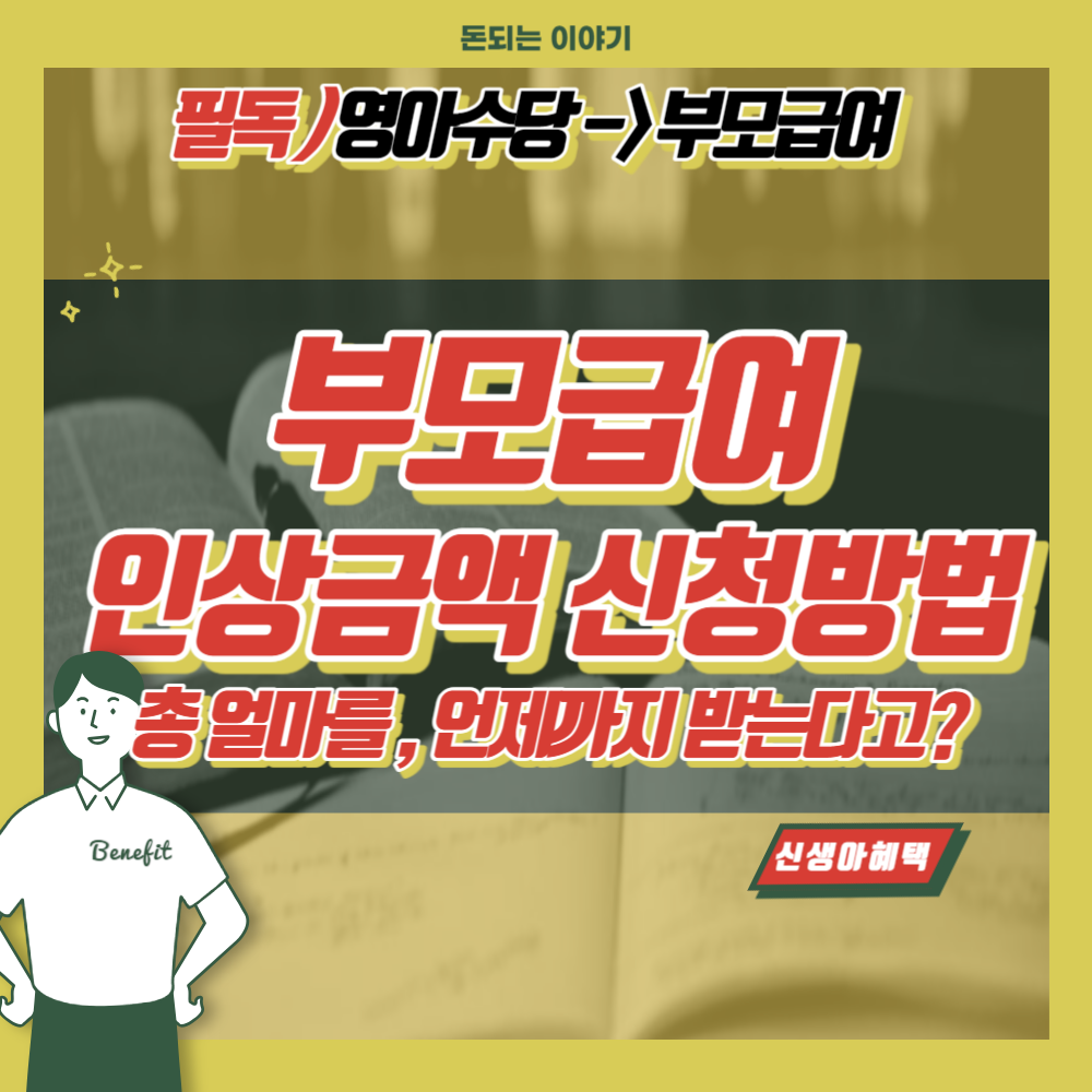 저번 글에서는 신생아 특례 대출(주택 자금-매매, 전세 저금리 대출)에 이어서 오늘은 부모급여에 대해서 정리해드리겠습니다. 2023년까지는 영아수당으로 불렸던 부모금여. 인상금액, 지급일, 언제까지 지급하는지, 신청방법까지 다뤄보도록 하겠습니다.