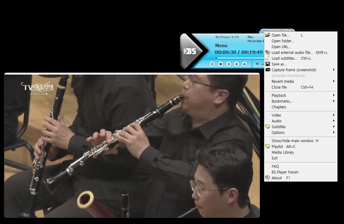 Load external audio file / subtitles 외부의 오디오파일이나 자막 등을 로드할 수 있습니다.
