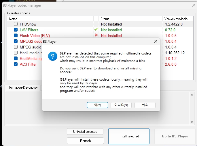 설치가 안된다는 안내입니다. 없는 코드를 다운받을거냐? 이런 말이라서 예 누르면 됩니다.